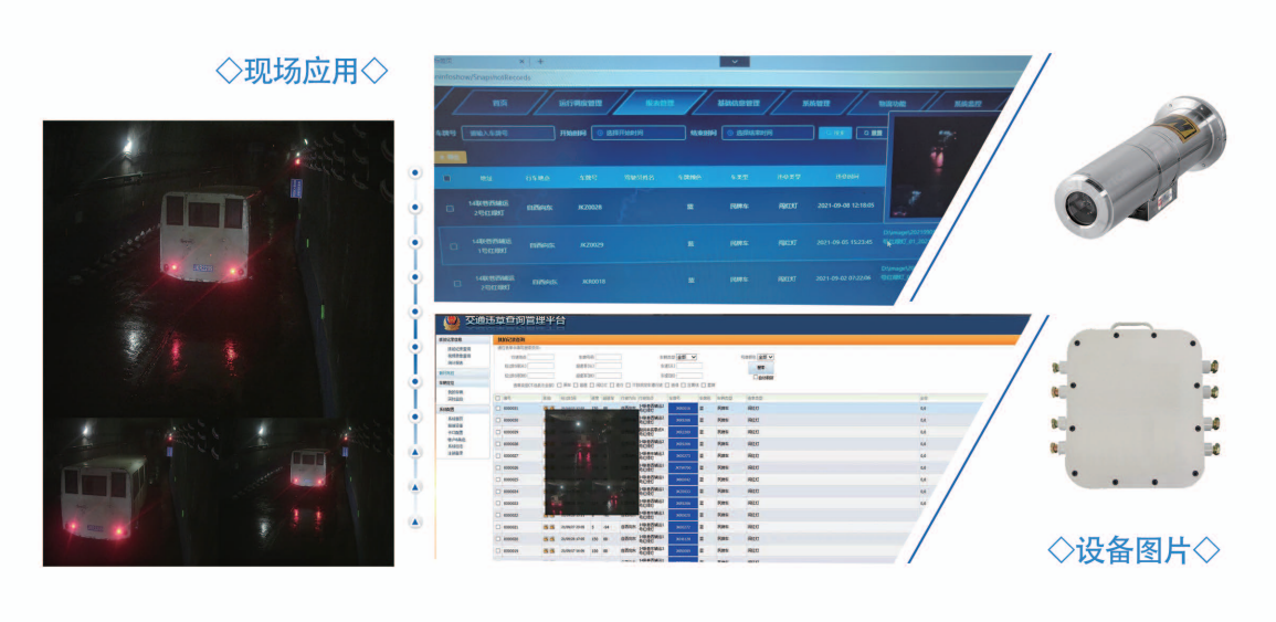 煤矿井下闯红灯抓拍系统主要由矿用数据采集网关(抓拍主机)、矿用摄像仪(井下车牌识别)、矿用巷道灯(补光灯)、网络传输单元和系统管理服务器等组成。系统核心设备为智能高清防爆抓拍相机,集抓拍、控制、识别、录像、压缩、传输于一体,具有先进的视频检测功能,可以对视频图像进行逐帧识别,对过往车辆进行行为判断,如有闯红灯车辆即进行抓拍、车牌识别、录像、存储,处理结果上传到后台并记录。