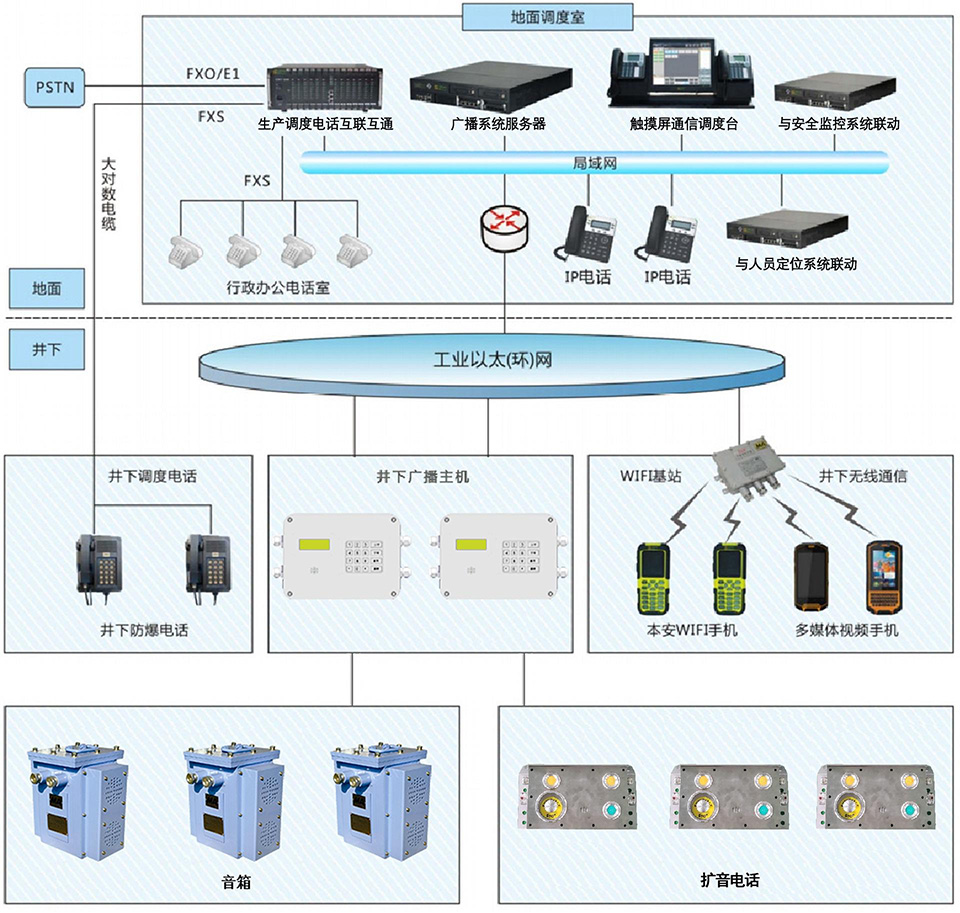 灵活控制与广播:支持多控制台、多级控制中心,分区 / 全区灵活部署;话筒紧急广播优先(中断音乐后自动恢复),可定时/人工播放音乐,一键群呼井下所有设备,远程/本地调节音量。