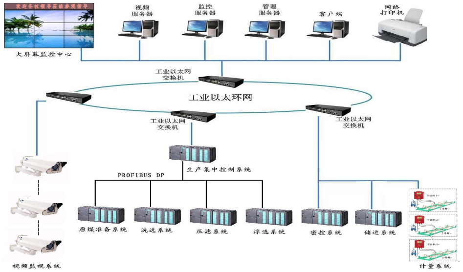 选煤厂集中监控系统是对选煤厂煤流上各台设备进行集中控制和全面监视;满足选煤厂对于煤流系统逆煤流起车、顺煤流停车的工艺要求;实现对于各种警告和故障的声、光报警以及故障停机功能;对各种操作、运行、故障进行记录以满足生产管理的需求。